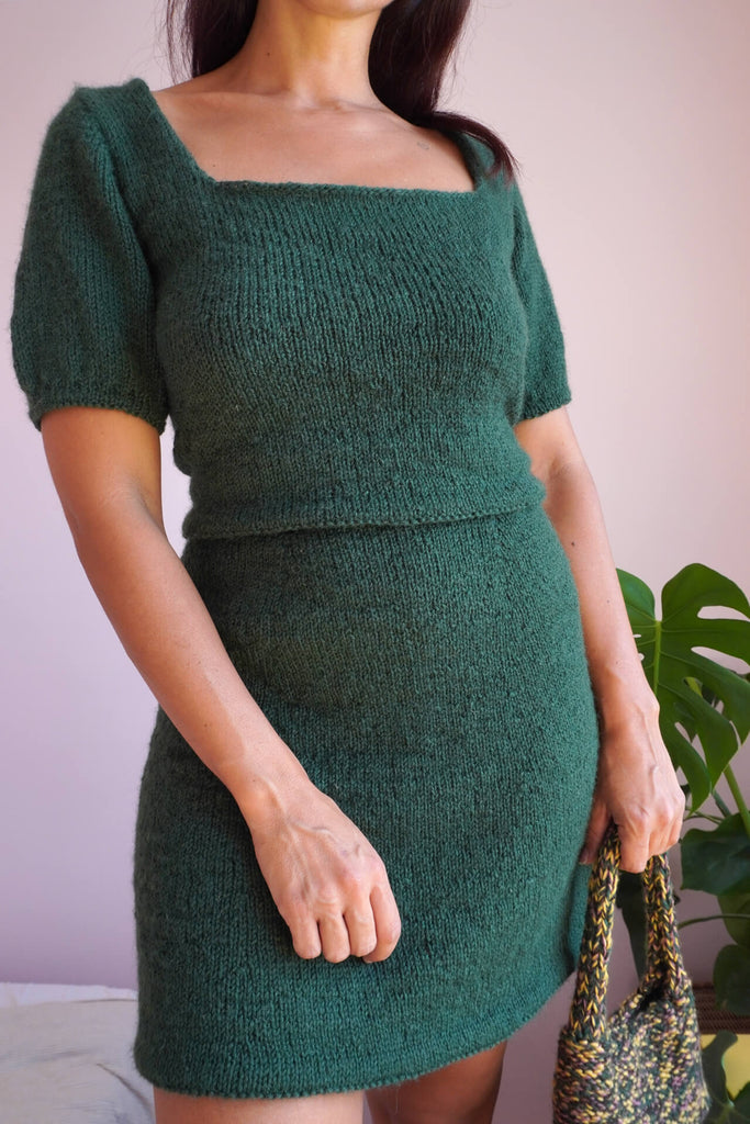 The chilly miniskirt is knitted seamlessly from the top down, starting with the waistband. The elastic is inserted before the waistband is closed, and increases are worked to follow the natural shape of the body. This pattern is designed so you can try on your skirt as you go and adjust the length to your preference. It’s beginner-friendly, and all the techniques used are linked to video tutorials for easy reference.